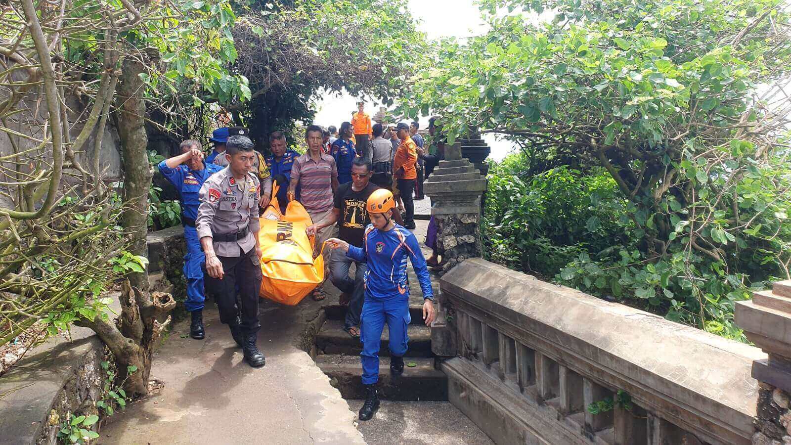 Tim SAR harus segera menjangkau korban, karena kondisi air laut mulai pasang, dikhawatirkan tubuhnya akan terseret ombak dan mempersulit upaya evakuasi. Setelah berjibaku selama kurang lebih satu setengah jam lamanya menuruni tebing menggunakan tali, akhirnya korban berhasil dibawa ke atas pada pukul 13.25 Wita. Dari ciri-cirinya diketahui jenis kelamin adalah perempuan dan belum diketahui identitasnya, namun diperkirakan merupakan WNA. "Korban hanya menggunakan bikini warna hitam, tedapat luka terbuka di bagian badannya dan kemungkinan patah kaki kanan," terang Kepala Kantor Pencarian dan Pertolongan Denpasar, I Nyoman Sidakarya, S.H. saat diwawancara di lokasi kejadian.