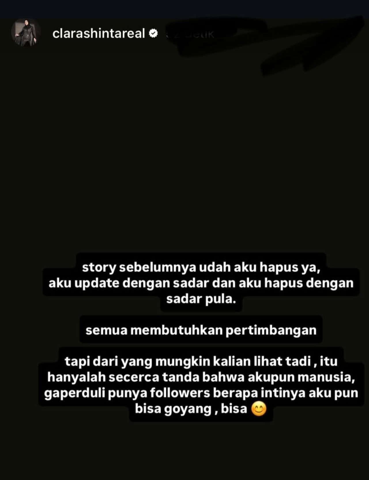 Tak lama setelah curhatannya viral, Clara Shinta memutuskan untuk menghapus unggahan tersebut.