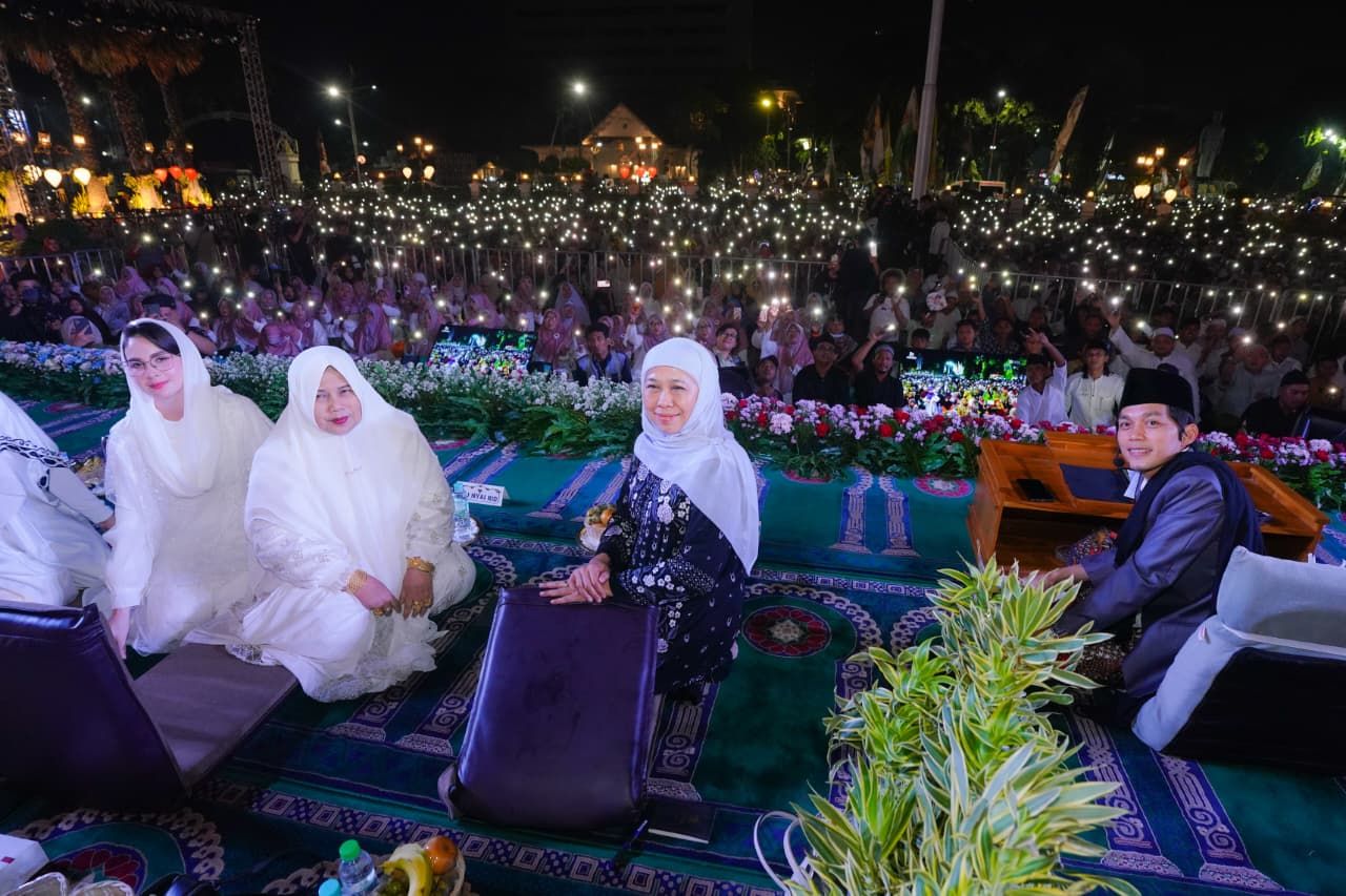 Dalam kesempatan itu, Gubernur Khofifah menyampaikan, malam penuh berkah ini menjadi momentum bagi seluruh elemen masyarakat Jatim untuk memperkuat spiritualitas dan kebersamaan dalam membangun daerah.