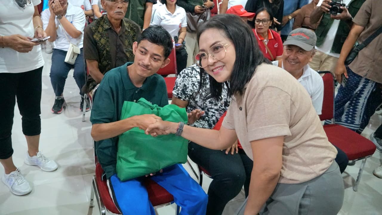 Usai acara, Nyonya Rasniathi Adi Arnawa juga berkesempatan mengunjungi rumah dua warga rentan di Banjar Panca Warga, Desa Mengwitani, untuk memberikan bantuan kursi roda dan paket sembako, dengan harapan dapat meringankan beban dan mempercepat kesembuhan mereka.