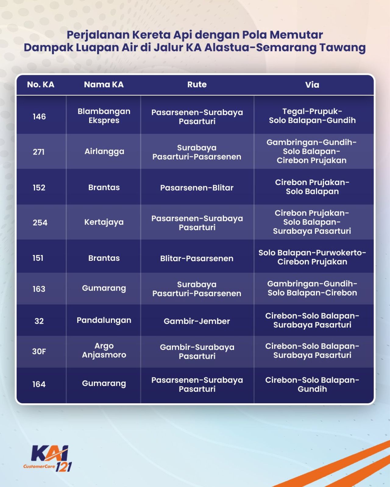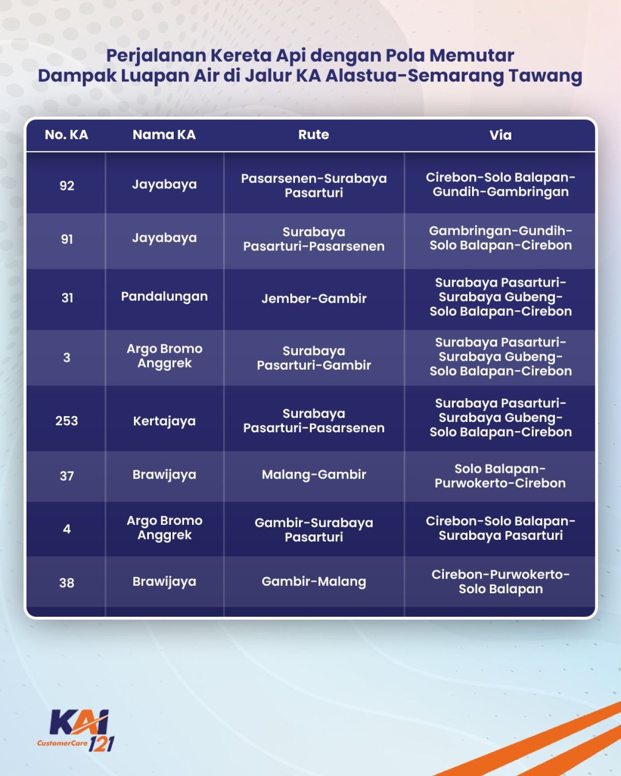 Berikut daftar lengkap 16 KA yang diputar untuk menghindari genangan air: