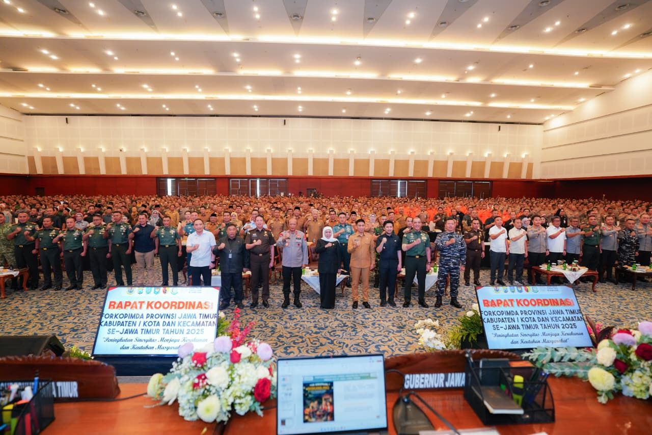 Surabaya, MCI News – Gubernur Jawa Timur Khofifah Indar Parawansa memimpin Rapat Koordinasi (Rakor) Forkopimda Provinsi, Forkopimda Kabupaten/Kota, dan Forkopimcam se-Jawa Timur Tahun 2025 di Grand City Convex Surabaya, Selasa (4/11/2025).